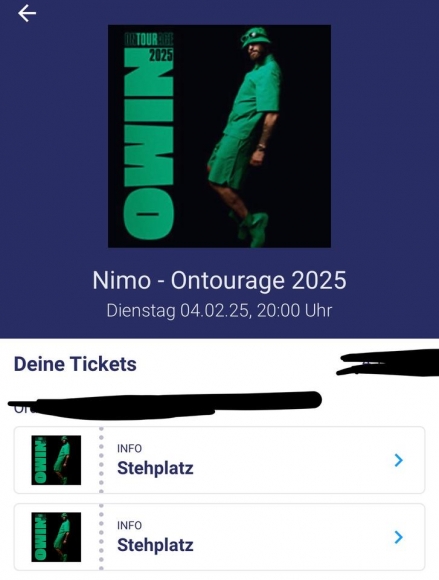 Ich habe zwei Karten für das nimo Konzert noch da, die Tickets sind ausverkauft, daher auch der Preis.