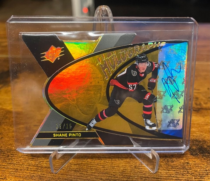 2023-24 SPx Holographs Shane Pinto Gold Holo Autograph /15 Ottawa