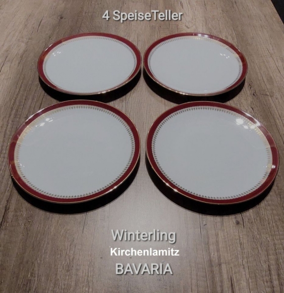4 Winterling Kirchenlamitz Bavaria Teller ⌀ 34 cm weiß rot gold