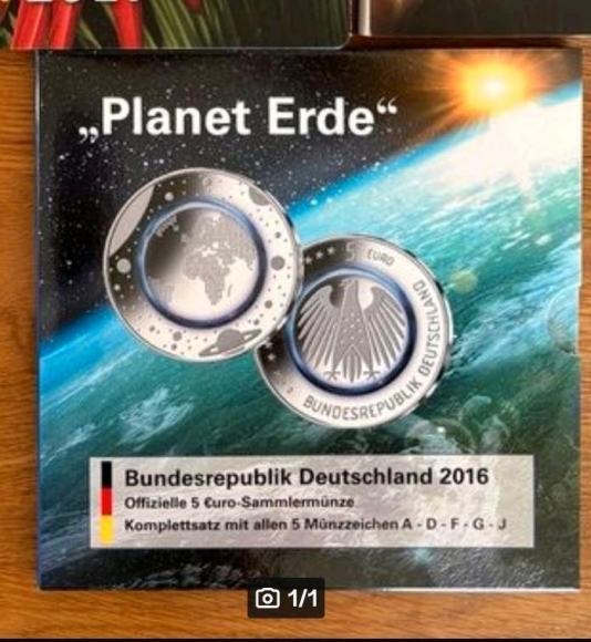 5x 5€ MÜNZEN BLAUER PLANET ERDE 2016 ADFGJ BRD LEERER FOLDER ALBUM RAR