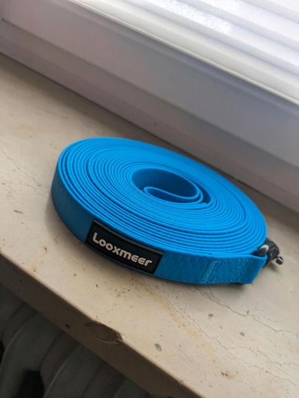 Die Schleppleine ist unbenutzt und aus robustem, wasserfestem Polyester.