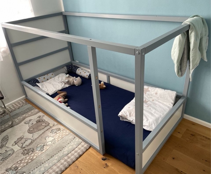 Das Bett wurde selber gestrichen und die Farbe kann mitgegeben werden.