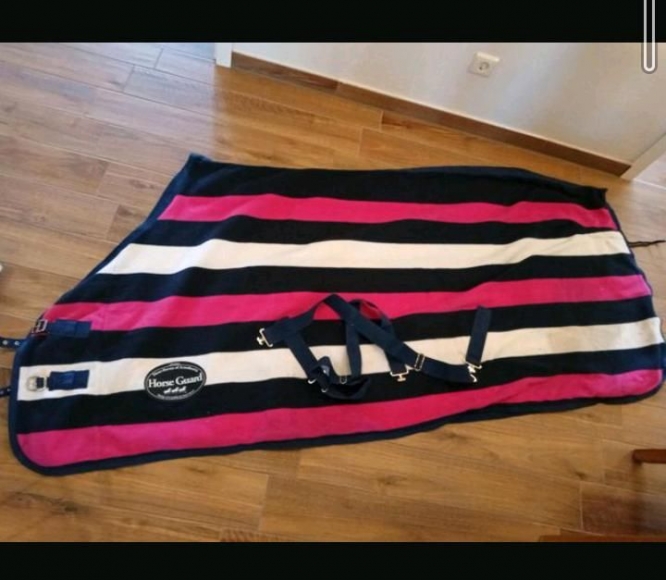 Verkaufe eine Abschwitzdecke in der Größe 155 cm, guter gebrauchter Zustand, eine Seite ein Fleck ( siehe Bilder), Bauchgurte abnehmbar.