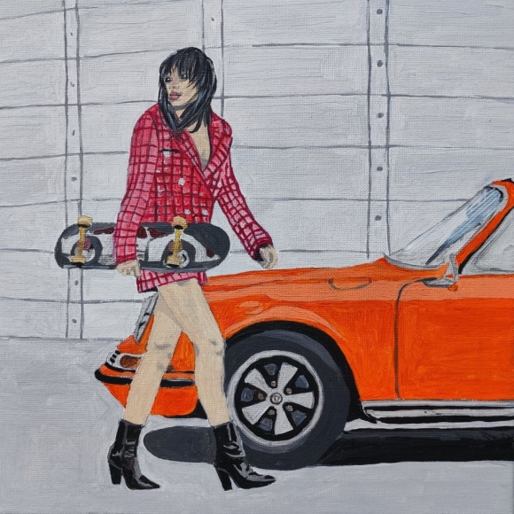 Acrylbild Porsche 911 model f, mit sexy Girl freie Interpretation auf Leinwand, Original, Poster Pop-Art