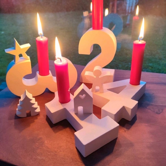 Handgegossene Zahlen 1 2 3 4 als Kerzenständer. Außergewöhnlicher moderner Adventskranz.