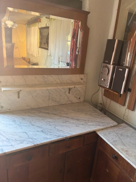 Verkaufen hier einen alten Schrank mit Spiegel und Marmorplatte