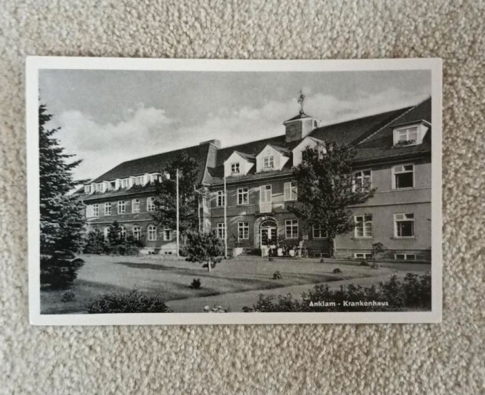 Bietete unbeschriebene Postkarte vom Krankenhaus Anklam