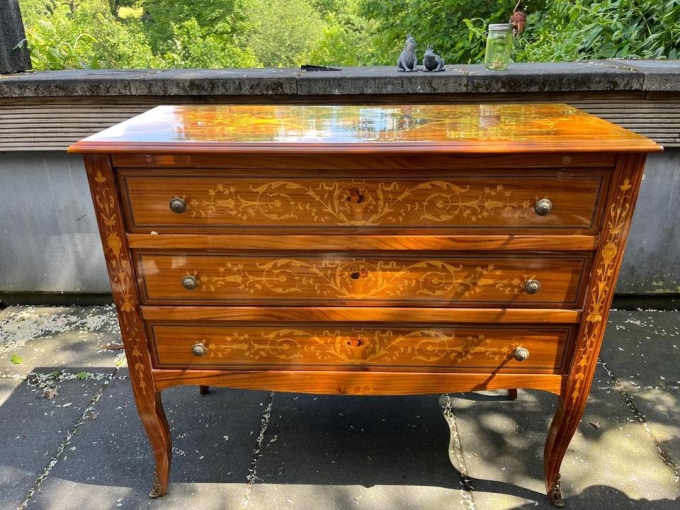 Antike Holz Kommode mit 3 Schubladen und Intarsien Italien