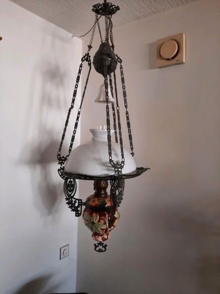 Verkauft wird 1 Petroleum Deckenlampe, umgerüstet auf 220V.