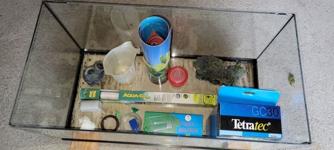 im Nebengebäude/Boden gefundenes Aquarium incl. Zubehör