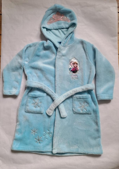 Kuscheliger Bademantel mit Anna & Elsa Applikation sowie Schneeflocken-Stickerei. Sehr guter Zustand.