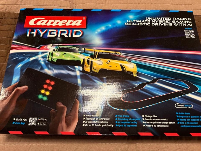 Verkaufe hier eine neue und ungeöffnete Carrera Hybrid Bahn. Wurde erst im Oktober 2024 auf dem Markt gebracht und soll das Racing im Bereich Slotcar weiter bringen.