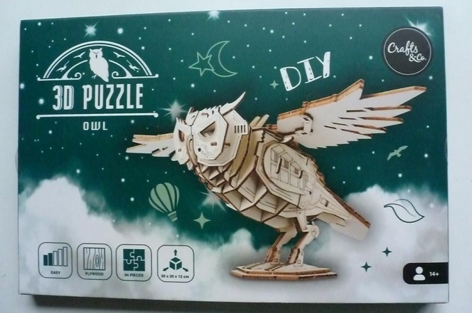 CRAFTS & Co. - 3D-Puzzle Eule, Holz, 64 Teile, unbespielt