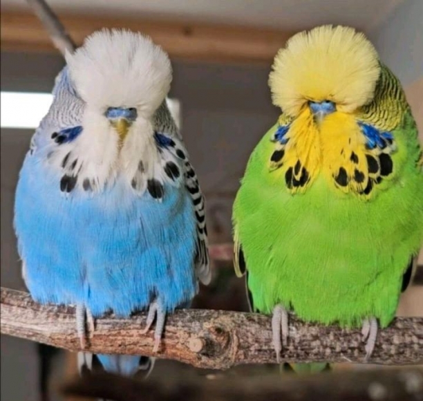Zwei junge Standart /Schauwellensittiche sind noch abzugeben .