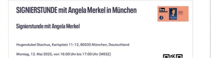 Dr. Angela Merkel | München | Signierstunde | 12.05.2025 | Ticket