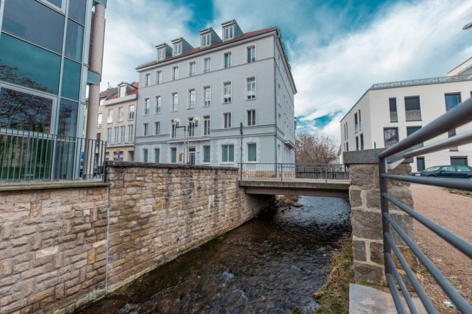 Ein ruhiges Apartment direkt am Fluss, hinter dem Domplatz verkehrsberuhigt. Ein gemütliches Boxspringbett und eine Fernseher laden ein zum verweilen und entspannen. Die Küche und das Bad sind neu renoviert.
