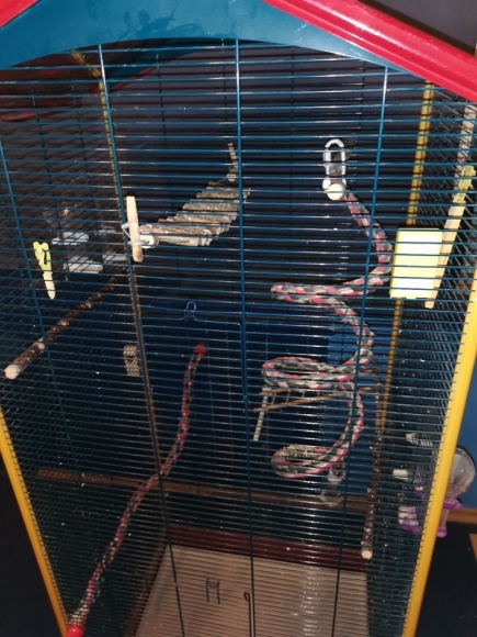 3 Holzstangen weitere Sitzstangen und Spirale aus Tau dazu kommen noch Sand das was noch da ist
