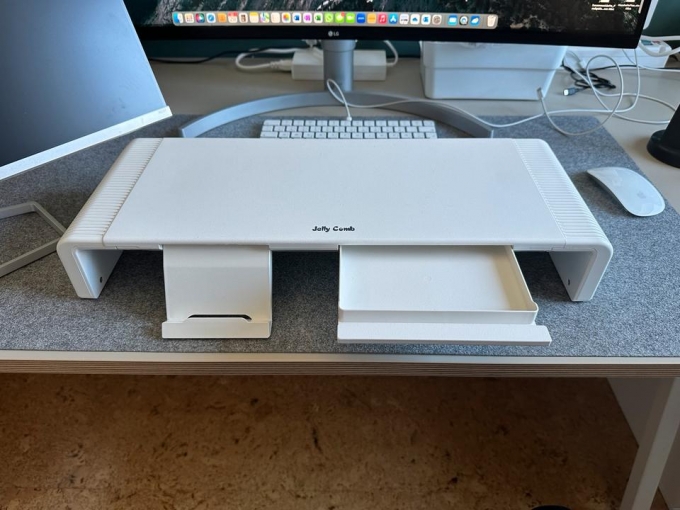 Faltbarer Monitorständer "Jelly Comb" in Weiß an.