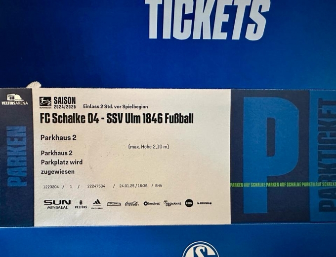 Ich verkaufe ein Parkticket für das Spiel FC Schalke 04 - SSV Ulm (VIP Parkplatz)