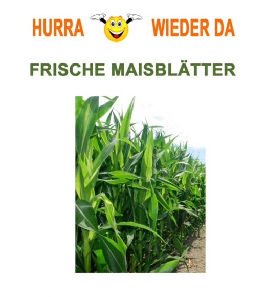 Maisblätter sind sehr vitaminreich und machen im Gegensatz zu den Kolben nicht dick. Gerne dürfen sie öfter gegeben werden.