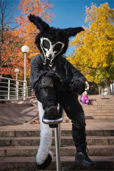Der Head wurde von mir gebaut mit der 3D Base von Noyra. Der Paintjob müsste nochmal ordentlich gemacht werden, da ich diesen nur schnell fertig gemacht habe. Die Ohren sind 3D gebaut aus einem Gitterartigen Material welches kurzzeitig biegbar ist aber immer wieder in den selben Zustand sich bewegt. Zwischen Innenohr und Außenohr ist es noch nicht festgenäht und der eigentlich geplante Neck auch noch nicht fertig, da ich persönlich den Suit lieber ohne Neck trage. Zudem hat man eine perfekte Sicht und Ventilation: ungefähr wie bei einer Skulldog kann man auch den Unterkiefer so weit aufmachen, wie man möchte. Die Maske hat bis jetzt innen noch keine Gummis befestigt womit ich bis jetzt super zurecht kam. Oben am Kopf waren mal Hörner befestigt durch Klett welches man nicht sieht. Diese könnte ich neu machen auf Wunsch. Die magnetische Zunge ist wie beim Innenohr aus Mochi Minky genäht und biegbar. Es ist eine gespaltete Zunge mit insgesamt 4 noch zu erkennenden Zacken. Der Magnet hat eine angenehme Stärke weshalb es nicht zu schwer ist die Zunge rauszunehmen und sie fällt auch nicht einfach raus.