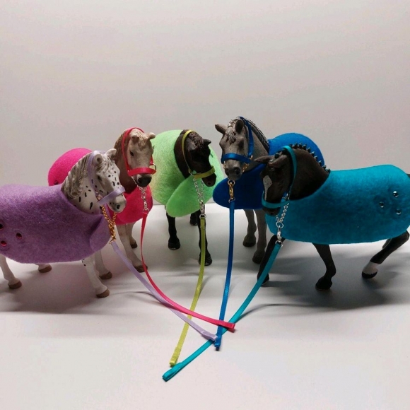 ♥Geschenk♥5Decken 5Halfter 5Führstricke♥Pferde♥Zubehör♥ Schleich♥