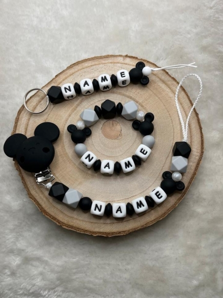 Jede Kette in der Anzeige kann farblich abgeändert und neu gestaltet werden. Es sind nur Beispiele und Anregungen. Jede Schnullerkette kann auch mit einem Anhänger für MAM-Nuckis angefertigt werden.