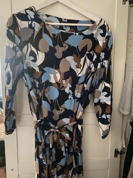 Mit halblangen Ärmeln und Stoffgürtel an der Taille.