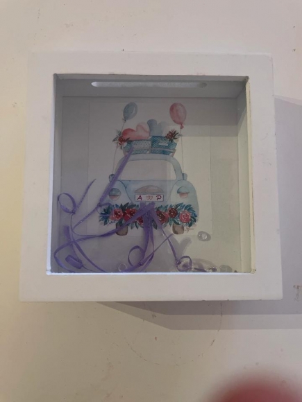 Ein süßes Geschenk für die Hochzeit, Villt als Geldgeschenk, Bild kann man im inneren wcehseln. Kann auch als Spardose dienen und/ oder an die wand als Bilderrahmen gehangen werden