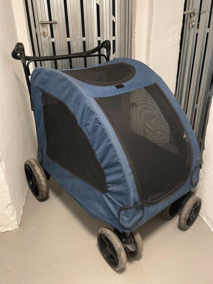 Der Buggy ist in gutem, gebrauchten Zustand, zusammenklappbar, auch für große Hunde geeignet.