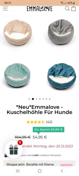 Leider ist das neue Hundebettchen in Größe M, 60cm ,für unseren Hund zu klein. Daher geben wir es für 30 Euro ab. Es ist unbenutzt, in der Farbe grün, siehe Foto .