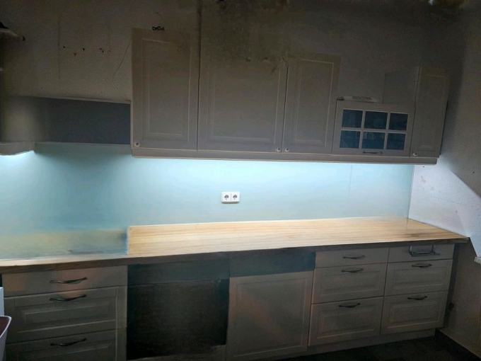 Nur die Küchenzeile mit Hänge und unterschränke ohne Arbeitsplatte und Elektrogeräte