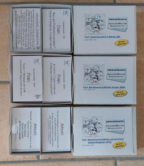 Zum Verkauf stehen hier meine Lernkarten von leichter lernen zur Vorbereitung auf den Industriemeister. Aktuelle Auflage 2024/2025