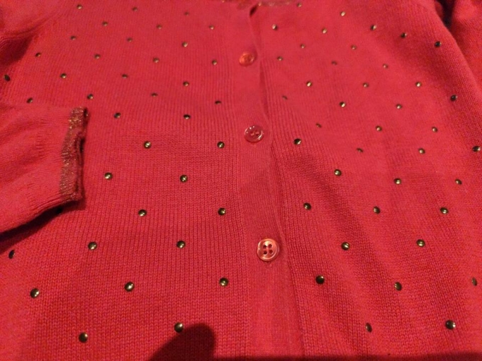 Sie wurde nur sehr selten getragen. Die Qualität ist 100% Baumwolle; mit dünnen nNeten und Glitzergarn an Ärmel und Halsausschnitt.