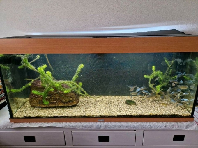 Angeboten wird ein leeres, gut erhaltenes Aquarium von Juwel (Rio 300) INKLUSIVE sehr gut erhaltenen, teilweise NEUEM Zubehör (JBL Filter, Sauerstoff Pumpe, Algen Entferner, Teleskop Schaber, Fenster Reiniger Magneten, Schläuche etc - siehe alle Bilder).
