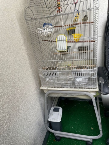 Ein paar Kanarienvogel mit große Käfig und Zubehör