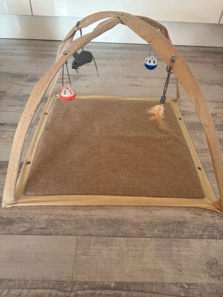 Ich verkaufe hier eine Spielmatte für Katzen mit Spielzeugen die daran hängen. Es ist noch wie Neu. Habe den selben noch in Grau.