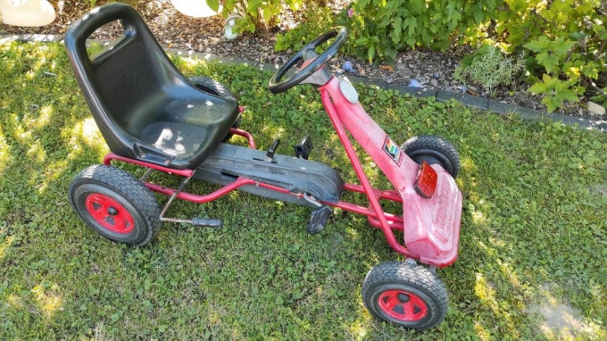Dieses rote Kettcar ist schon etwas verblichen und man sieht die Gebrauchsspuren, aber es ist robust und noch vollfunktionsfähig. Es ist für Kinder ab ca 3 oder 4 Jahren. Am Hebel gibt es einen Gang und einen Lehrgang. Abholung in 31693 Hespe. Bei Fragen, schreibt kurz...