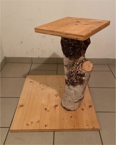 Wir verkaufen einen kleinen Katzenkratzbaum aus einem Birkenstamm. Der Birkenstamm diente bei uns als erste Stufe um