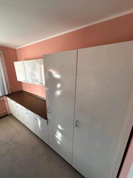 Gut erhaltene, gepflegte Küche in zeitlosem Weiß. Die Küche ist zweizeilig: