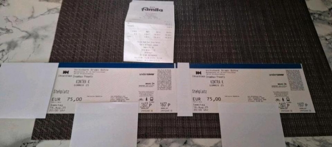 Hallo, ich Verkaufe meine 2 Konzert Karten für Kontra K. Aus Persönlichen Gründen kann ich dort leider nicht hin.