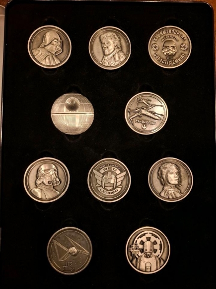 Biete hier eine Limitierte Sammelmünz collection aus dem Film STAR WARS ROUGE ONE bestehend aus 10 Münzen in einer Box.