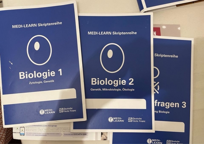 Ich biete die vollständige Reihe an Skripten für die Biologie in der Vorklinik. Es handelt sich um zwei Hefte, die die Theorie abdecken und ein Heft zum Fragen kreuzen, welches komplett ungenutzt ist. Die Theorie-Hefte sind durchweg markiert, wie es auf dem Foto zu sehen ist. Bei Fragen gern bei mir melden:)