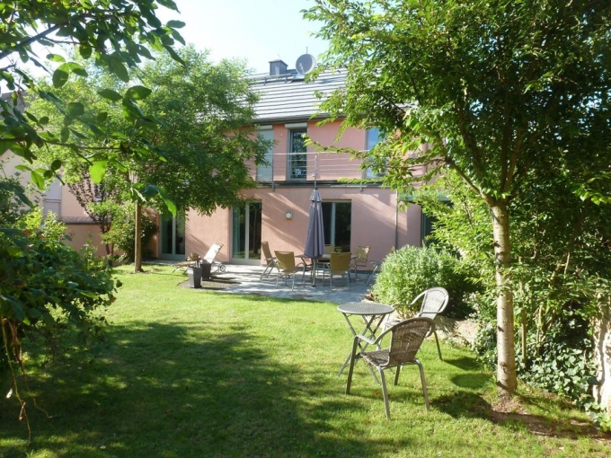 Das Architektenhaus, das Anfang 2004 erbaut wurde, wurde durch bodentiefe Fenster und Türen nach Süden hin geöffnet, so dass Sie von vielen Räumen direkten Zugang und Blick auf die Terrasse und den Garten haben. Teilweise ist der Garten umfriedet von einer schönen Natursteinmauer, an die sich ein modernes, zum Stil des Hauses passendes Gartenhäuschen anschließt.