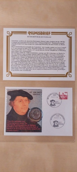 Numisbrief, 1991, Martin Luther, mit 5 D-Mark Münze