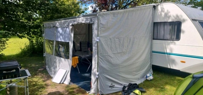 mit passenden Seitenteilen und Front für ein komplettes Vorzelt erst einmal benutzt