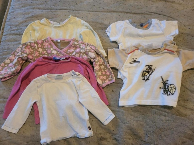 Ich verkaufe 4 langarm Oberteile das weiße ist in der Größe 56 und die anderen drei sind in der Größe 62-68 und zwei kurzarmoberteile in der Größe 62,sie sind in einen sehr guten Zustand und zu. Teil kaum getragen.