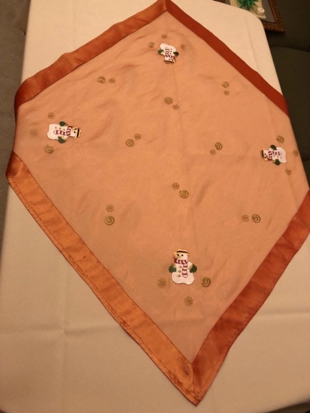 Organza Tischdecke 77 x 77 cm Schneemann Motiv Weihnachten
