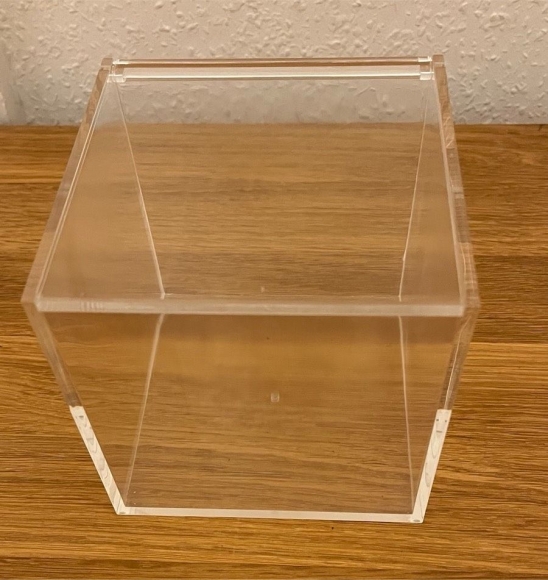 verkauft wird dieser transparente Nespresso Kapsselbehälter. Dieser hat eine Kantenlänge von ca. 13 cm. Er hat die üblichen Gebrauchsspuren und wird unter Ausschluss jeglicher Gewährleistung verkauft.
