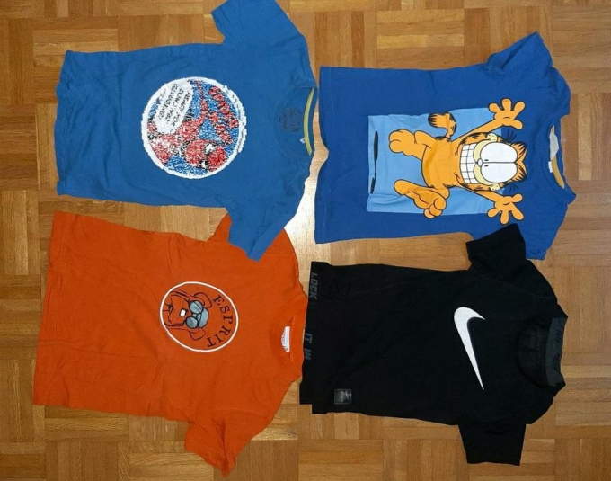 Blaues Pailletten- T-shirt mit Iron man/Spiderman , blaues und orange T-shirt mit Aufdruck, schwarzes Sportshirt von NIKE